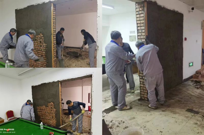 新辦公區(qū)分布在體育館主館1—3層,各樓層建筑結(jié)構(gòu)、房間戶型、施工方案均不同,在時間緊、任務(wù)重的情況下,工程維修負(fù)責(zé)人第一時間召集相關(guān)責(zé)任主體對施工方案進行全面細(xì)致地評估研判,在做好深化圖紙、確定施工投入材料及工藝效果、落實分項施工方案及技術(shù)措施保障等籌備工作的基礎(chǔ)上,確保人員及作業(yè)環(huán)境安全的前提下,組織工程人員6名、歷時5天,拆除廢棄配電柜,壘砌磚墻,刮膩噴漆,改造電路,鋪設(shè)空調(diào)電纜及排水管路,共裝修改造辦公用房11間;該工程若外包費用約8萬元,自行修繕改造費用僅約5萬,節(jié)省約3萬元、節(jié)省比率達(dá)到37.5%。華強資產(chǎn)公司以“能自主維修絕不外委”的工作理念,節(jié)支降耗,改善環(huán)境。