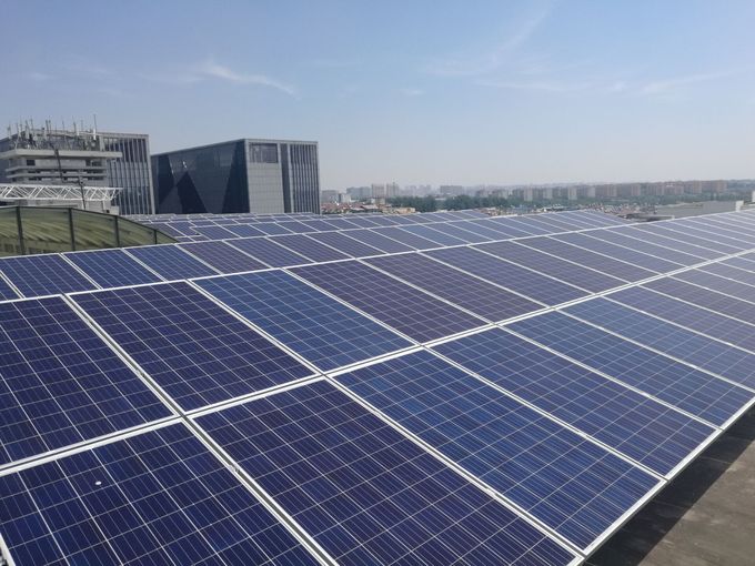 近日,科創(chuàng)公司屋頂分布式光伏發(fā)電項(xiàng)目一期順利并網(wǎng)發(fā)電。該項(xiàng)目于2016年2月25日通過(guò)了市發(fā)改委審批,4月15日開工建設(shè)。項(xiàng)目總裝機(jī)容量為350KWP,分為兩期建設(shè),其中一期200KWP位于科創(chuàng)公司B座屋頂,總面積近3000平米,共鋪設(shè)625塊多晶硅太陽(yáng)能電池組件,已于2016年5月16日順利完工,并通過(guò)電業(yè)局審核并網(wǎng)發(fā)電。二期150KWP位于集群副樓頂層屋面、科技局高新技術(shù)創(chuàng)業(yè)中心頂層屋面,總面積近2000平米,鋪設(shè)450塊多晶硅太陽(yáng)能電池組件,已于5月25日開工建設(shè),預(yù)計(jì)6月20日完工并網(wǎng)發(fā)電。項(xiàng)目建成后,預(yù)計(jì)年發(fā)電量約35萬(wàn)度,實(shí)現(xiàn)收益50余萬(wàn)元。