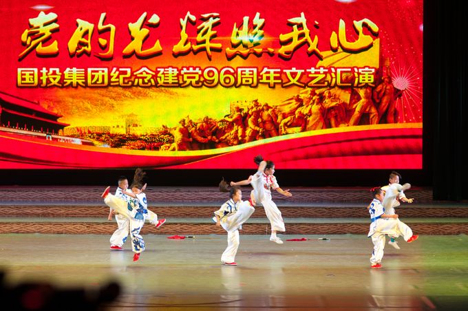 一曲《你是一面旗幟》拉開了文藝匯演的帷幕?!端亩沙嗨銎姹贰陡枨?lián)唱》回顧了黨的光輝歷程;《中國進行曲》《共筑中國夢》歌頌了祖國蓬勃發(fā)展,奮力實現(xiàn)偉大中國夢的美好愿望;集團公司自編自創(chuàng)的大合唱《國投員工競風流》氣勢磅礴,展現(xiàn)了國投人奮發(fā)向上、開拓創(chuàng)新的精神風貌。此次文藝匯演,集團公司各所屬企業(yè)、各基層黨組織積極參與,精心編排了歌曲、舞蹈、小品、快板、京劇、魔術、武術、書法、詩朗誦、樂器合奏等形式多樣、內(nèi)容豐富的文藝節(jié)目,共有200余名黨員、職工踴躍參加演出。整場演出體現(xiàn)了廣大黨員和干部職工愛黨敬業(yè)的心聲,唱出了不忘歷史的情懷,表達了對黨的生日深深祝福。