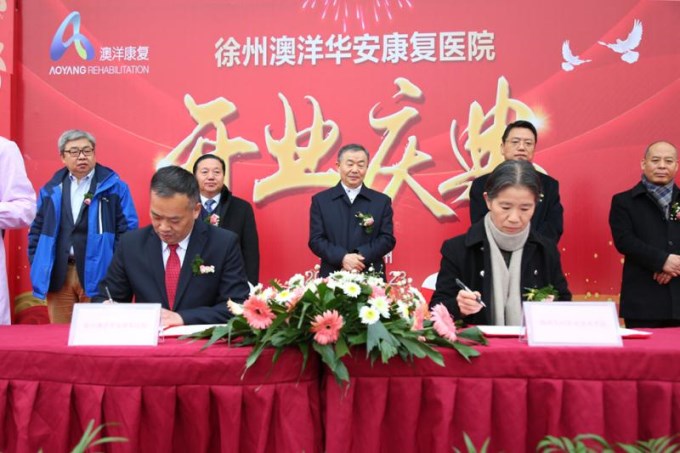 開業(yè)典禮上,徐州澳洋華安康復(fù)醫(yī)院與徐州市第一人民醫(yī)院簽署了醫(yī)院醫(yī)聯(lián)體合作協(xié)議、與徐州市九州職業(yè)技術(shù)學(xué)院簽署了教學(xué)醫(yī)院協(xié)議。