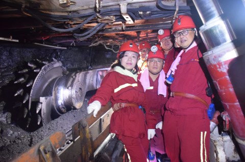 當天上午,參加體驗活動的同志們來到張雙樓煤礦,在礦方熱情接待和細心指導下,全體穿上工作服、膠靴,佩戴好礦燈、自救器,共同前往礦副井上口,現(xiàn)場學習了下井安全常識。隨后,同志們排著整齊的隊伍走進副井罐籠深入井下750米,穿過井口大巷,然后乘坐-750米水平暗斜井猴車沿著下山20°坡度方向行駛近1000米,通過74102材料運輸巷道進入深度1000米的74102采煤工作面,與礦井一線職工零距離接觸。在采煤工作面,同志們真真切切看到了地下閃閃發(fā)光的煤炭,以及一張張汗流浹背的面龐,一個個生龍活虎的身影,實實在在聽到了設備運轉震耳欲聾的轟鳴聲。采煤工作面黑暗、悶熱、潮濕的工作環(huán)境,礦工兄弟們吃苦耐勞、團結協(xié)作、樂于奉獻的精神深深打動了現(xiàn)場每一位體驗同志,給大家的思想帶來了極大的震撼。